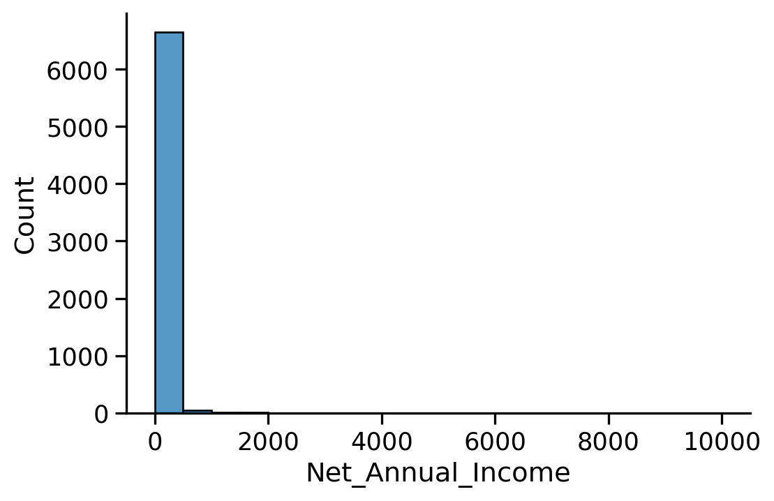 Something weird is going on with the Net_Annual_Income column… Try to understand what is going on and try to fix it