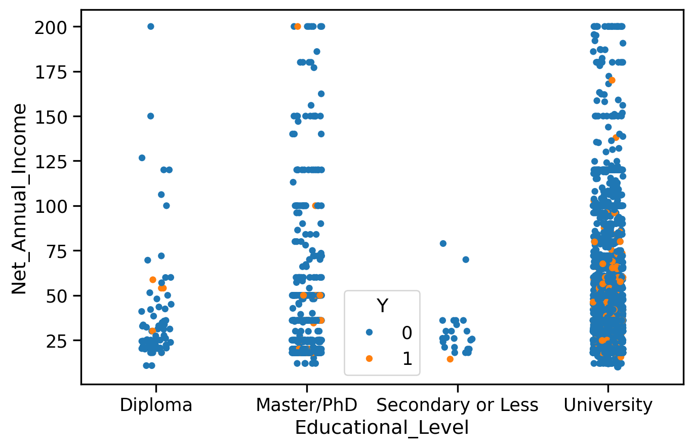 Many of these things can be done right at the beginning, when reading the CSV file, through some options to the pd.read_csv() function. You might need to read carefully its documentation in order to see which options are useful. Once you are happy with your importation and cleaning of the data, you can: - Use pandas and some graphical backend to perform data visualization … - … in order to understand visually the impact of some features on Y (credit was granted or not). For this, you need to decide which plots make sense for this and produce them