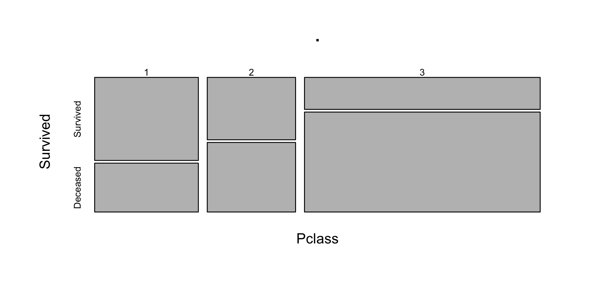Within each bar (Class), the _height_ of each (Survival Status) component is proportional to the _relative frequency_ of this Survival Status within that Passenger Class ] .panel[.panel-name[Plot]