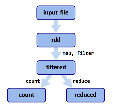 map, flatMap, filter to do functional transformations on this immutable dataThis is all done in Spark RDDs: a by product of these ideas is fault tolerance:
